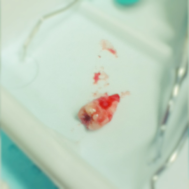 再然後...然後那個牙齒就被大鉗子給夾出來了...總過程不超過5分鐘...9點整打的麻藥9點05給牙牙拍最後一張寫真...